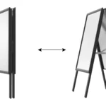- Léger et résistant - le porte-affiche peut être facilement déplacé d'une pièce à l'autre grâce à sa légèreté. Des charnières solides avec un mécanisme de verrouillage contre le pliage maintiennent la publicité attachée en un seul endroit, quelles que soient les conditions.