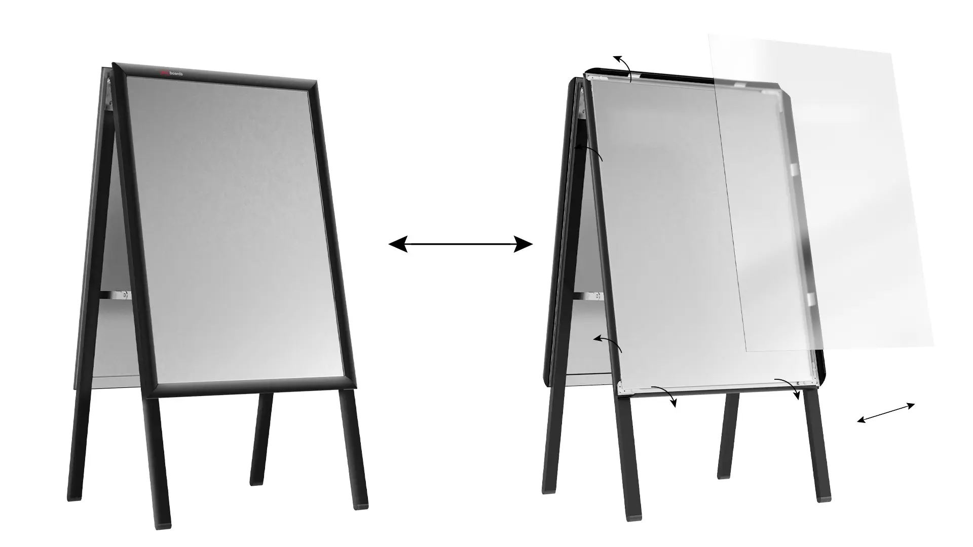 - Simplicité et utilisations répétées - permet l'installation et le remplacement instantanés de visuels grâce à un cadre à ouverture rapide. Les visuels peuvent être modifiés selon les besoins.