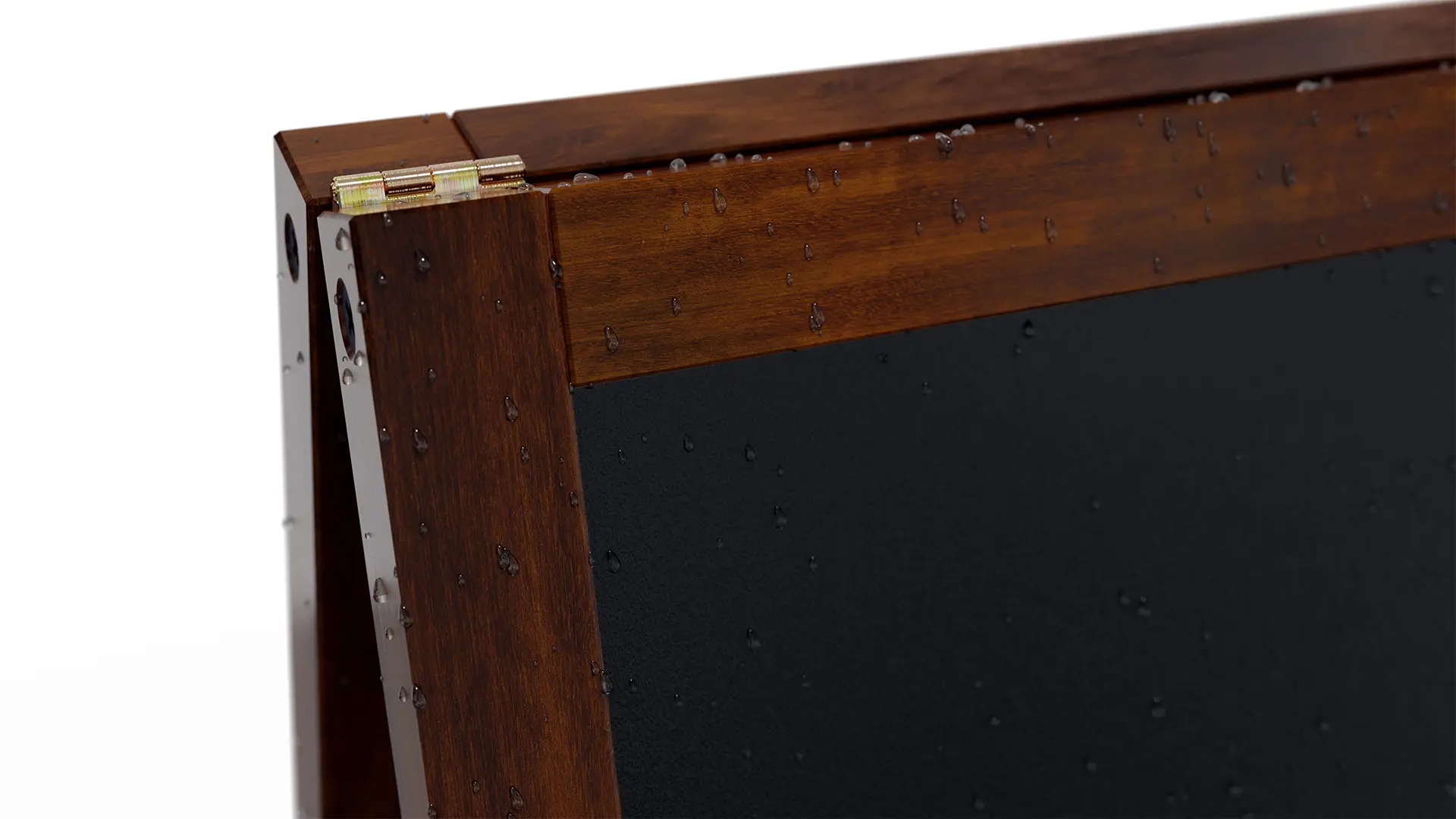 Le cœur du chevalet est une plaque ABS noire. Elle est fabriquée en plastique, ce qui la rend totalement résistante aux conditions météorologiques et aux dommages éventuels. Vous ne devez pas avoir peur de la pluie - votre chevalet stop trottoir peut fonctionner en permanence !