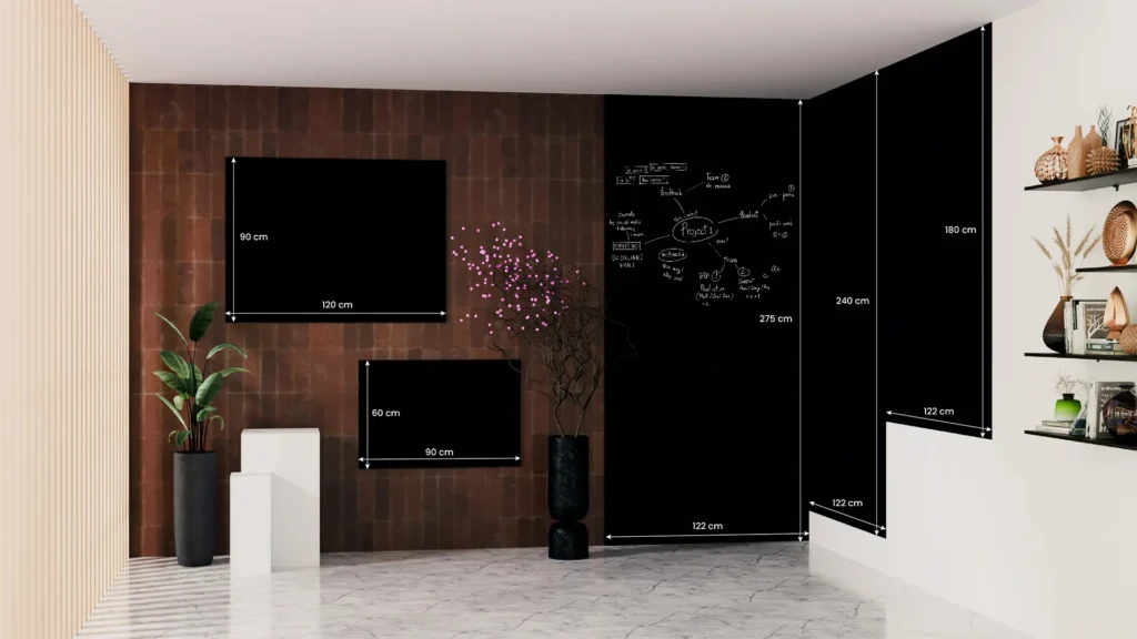 - UNIVERSEL - un tableau à craie est un outil universel qui peut être utilisé dans presque tous les lieux. Au bureau, il facilite l'organisation du travail, permet de noter des idées et de planifier des tâches, tout en conférant à l'espace un caractère élégant et professionnel. À la maison, il peut être utilisé aussi bien dans la cuisine comme tableau pour les listes de courses, les recettes ou les messages à la famille, que dans la chambre des enfants comme surface créative pour le dessin et l'apprentissage. Dans les écoles, il est idéal comme support d'enseignement, aidant à transmettre des connaissances et à impliquer les étudiants. Dans les restaurants et les bars, il peut être utilisé comme un support esthétique pour les menus, les promotions ou les offres spéciales, attirant l'attention des clients et ajoutant une touche élégante à l'intérieur.