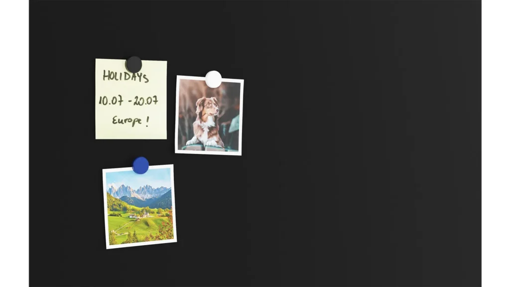 - MAGNÉTIQUE – grâce aux composants utilisés, le tableau est entièrement magnétique. Tous les types d'aimants peuvent être utilisés : classiques, touristiques, commémoratifs, néodymes.