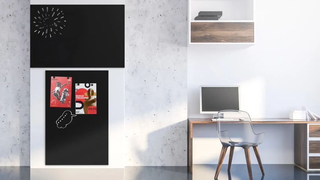 Tableau magnétique à craie SLIMboard sans cadre 90×60 cm + ACCESSOIRES
