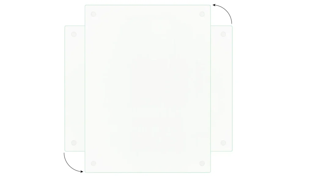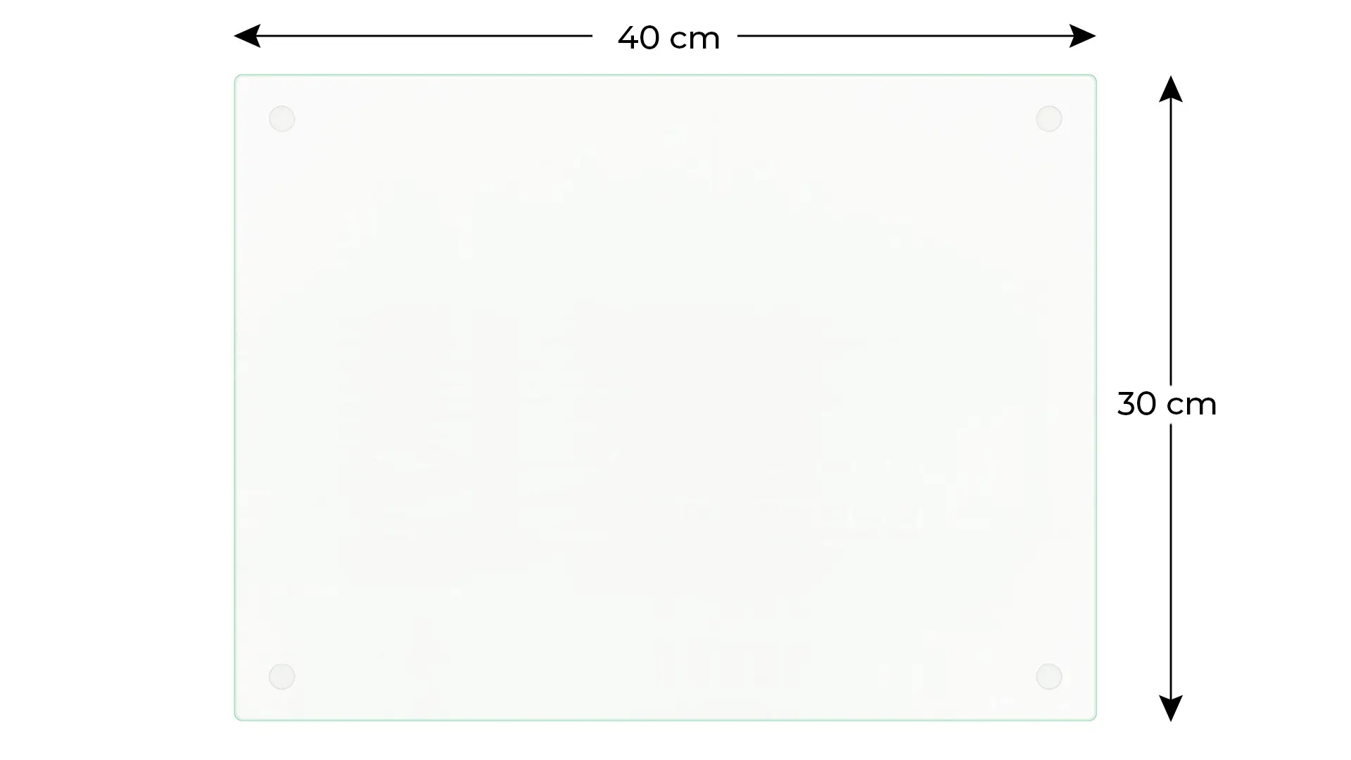 La plaque est constitué de verre trempé d'une épaisseur de 4 mm. Les bords du verre sont polis et les coins sont arrondis. Cela garantit la sécurité dans l'utilisation quotidienne. Grâce à la surface en verre, la planche est très facile à entretenir au quotidien.