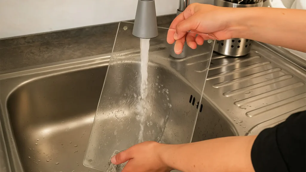Planche à découper en verre TRANSPARENTE 30×40 cm crédence de cuisine plaque de protection en verre