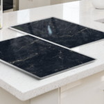 Plaque de Protection en Verre Trempé Universel et Multifonction – 2 pièces 52x30cm Motif Marbre Noir, Planche à Découper, Plateau en Verre