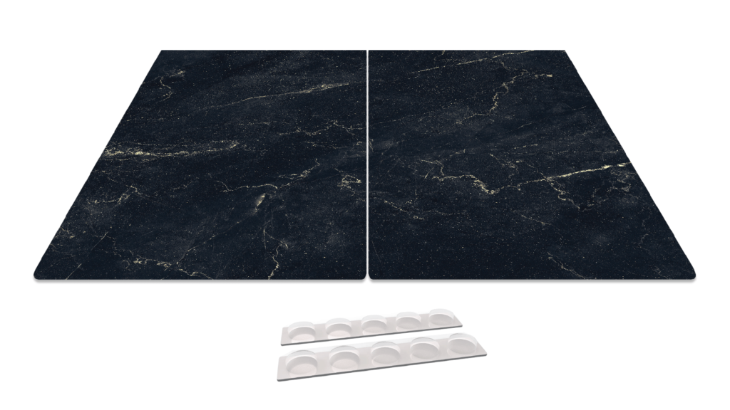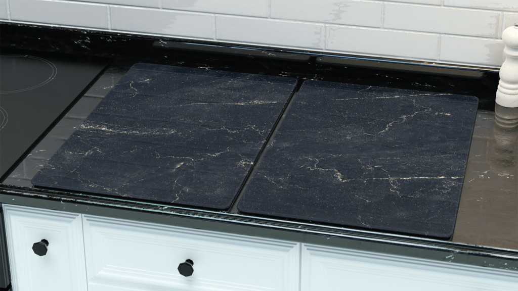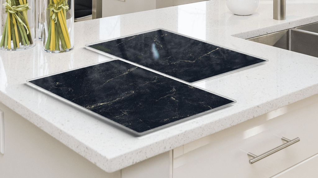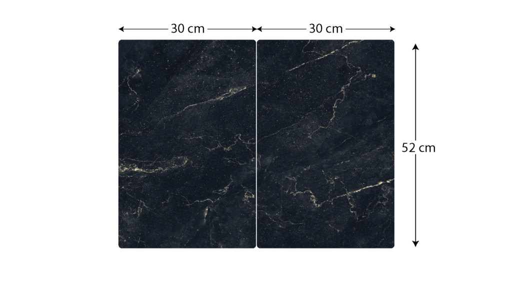 Plaque de Protection en Verre Trempé Universel et Multifonction – 2 pièces 52x30cm Motif Marbre Noir, Planche à Découper, Plateau en Verre