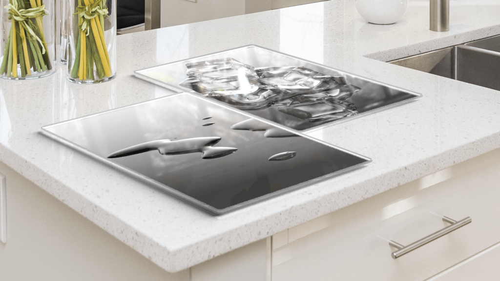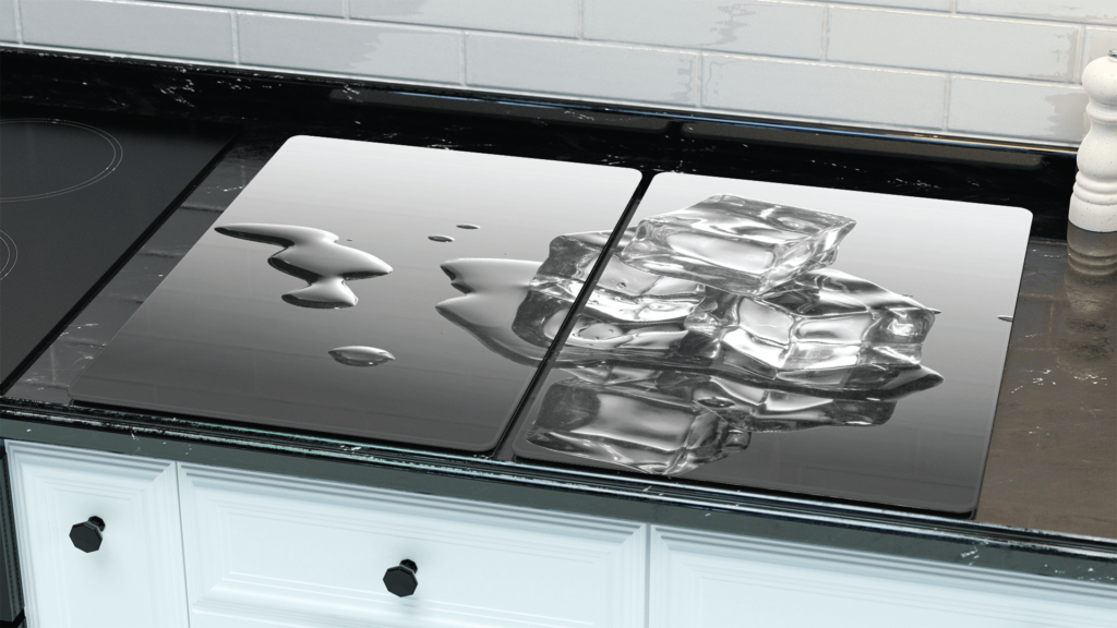 Plaque de Protection en Verre Trempé Universel et Multifonction – Planche à Découper & Plateau en Verre, 2 pièces 52x30cm Motif Glaçons