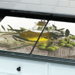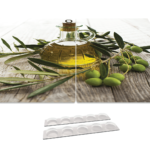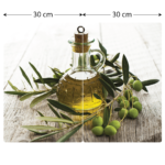 Plaque de Protection en Verre Trempé Universel et Multifonction – Planche à Découper & Plateau en Verre, 2 pièces 52x30cm Motif Huile d’Olive