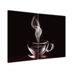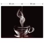 Plaque de Protection en Verre Trempé Universel et Multifonction – Planche à Découper & Plateau en Verre, 2 pièces 52x30cm Motif Tasse de Café