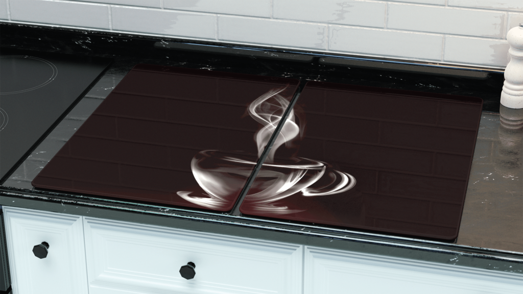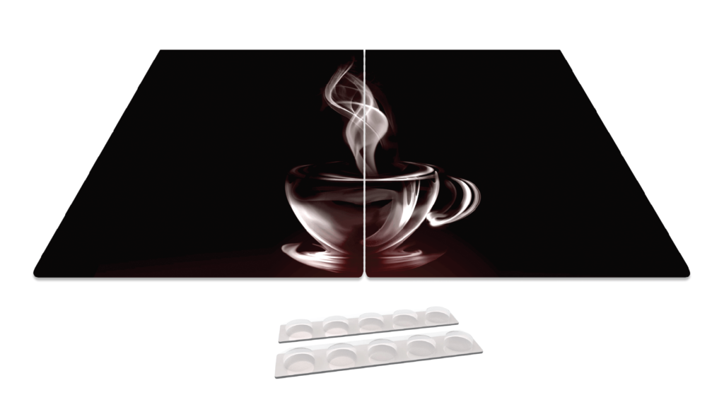 Plaque de Protection en Verre Trempé Universel et Multifonction – Planche à Découper & Plateau en Verre, 2 pièces 52x30cm Motif Tasse de Café