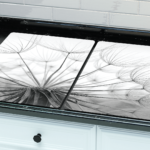 Plaque de Protection en Verre Trempé Universel et Multifonction – Planche à Découper & Plateau en Verre, 2 pièces 52x30cm Style Pissenlit