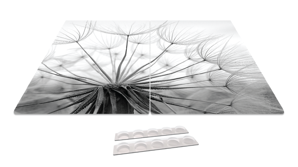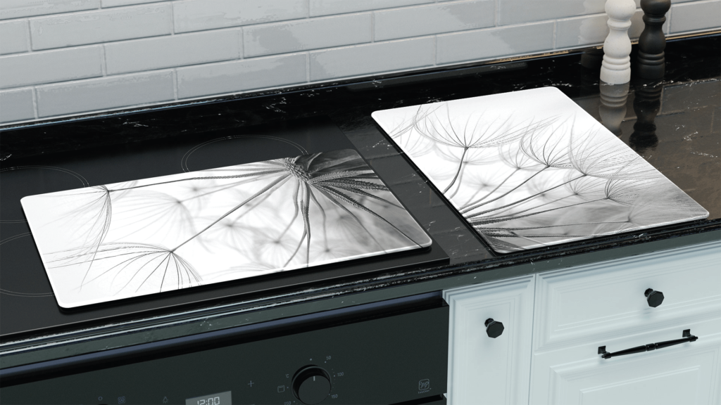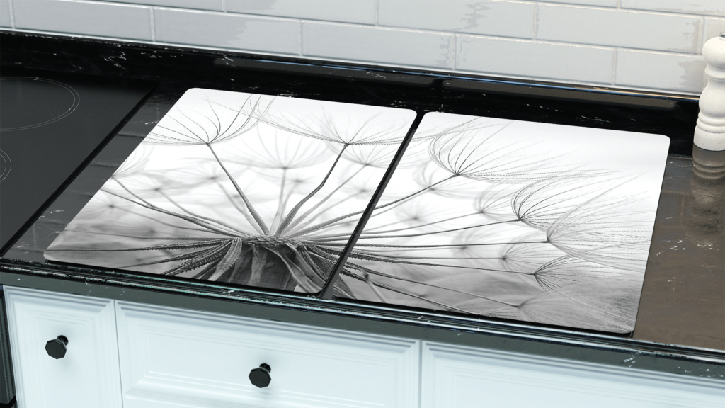 Plaque de Protection en Verre Trempé Universel et Multifonction – Planche à Découper & Plateau en Verre, 2 pièces 52x30cm Style Pissenlit