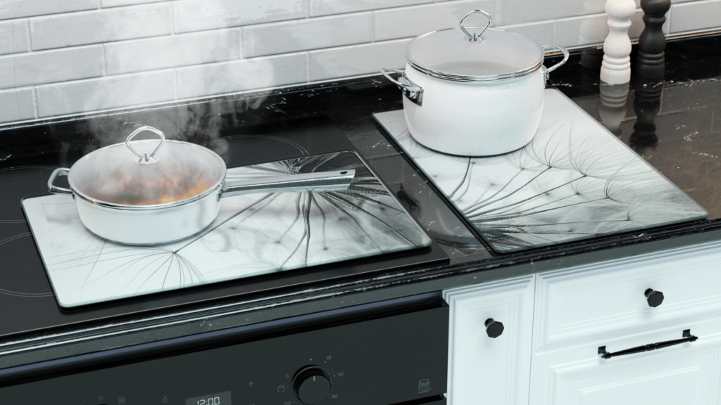 COMPATIBILITÉ - La plaque peut être utilisée comme couvercle pour différents types de poêles. Qu'il s'agisse d'une cuisinière en céramique, électrique ou à gaz, la plaque protège les surfaces et offre un espace de travail supplémentaire dans la cuisine.