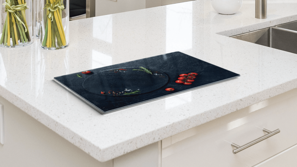 SÉCURITÉ ET DURABILITÉ - La surface est fabriquée en verre trempé de haute qualité et est particulièrement résistante aux rayures. De ce fait, elle est conçue pour une utilisation intensive et à long terme. Le verre trempé est incassable et peut résister aux températures les plus élevées.