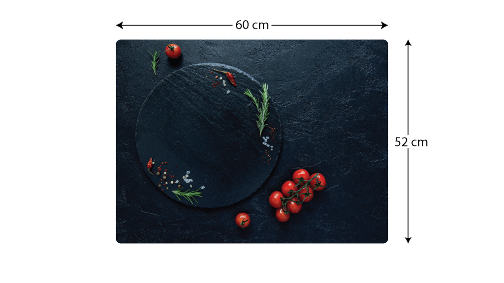 Plaque de Protection en Verre Trempé Universel et Multifonction – Planche à Découper & Plateau en Verre 60x52cm avec Motif Tomates Roche Pierre