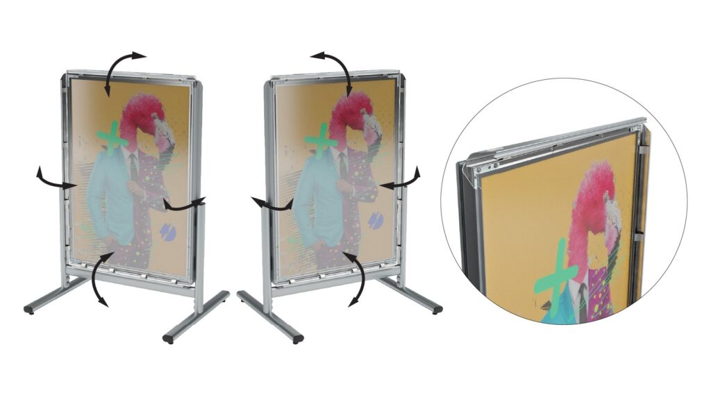 - Léger et résistant - le porte-affiche peut être facilement déplacé d'une pièce à l'autre grâce à sa légèreté. Des charnières solides maintiennent la publicité attachée en place, quelles que soient les conditions.