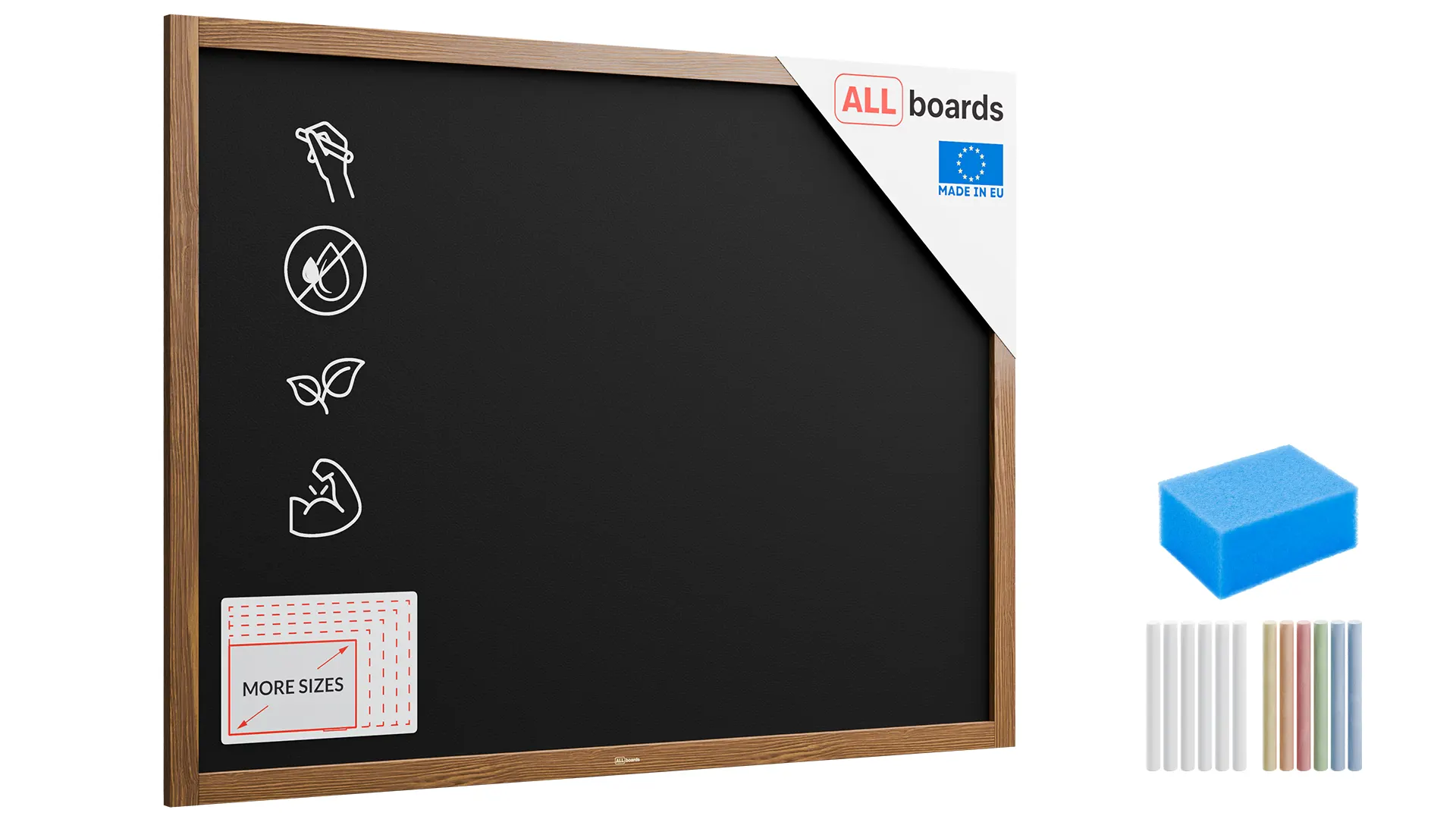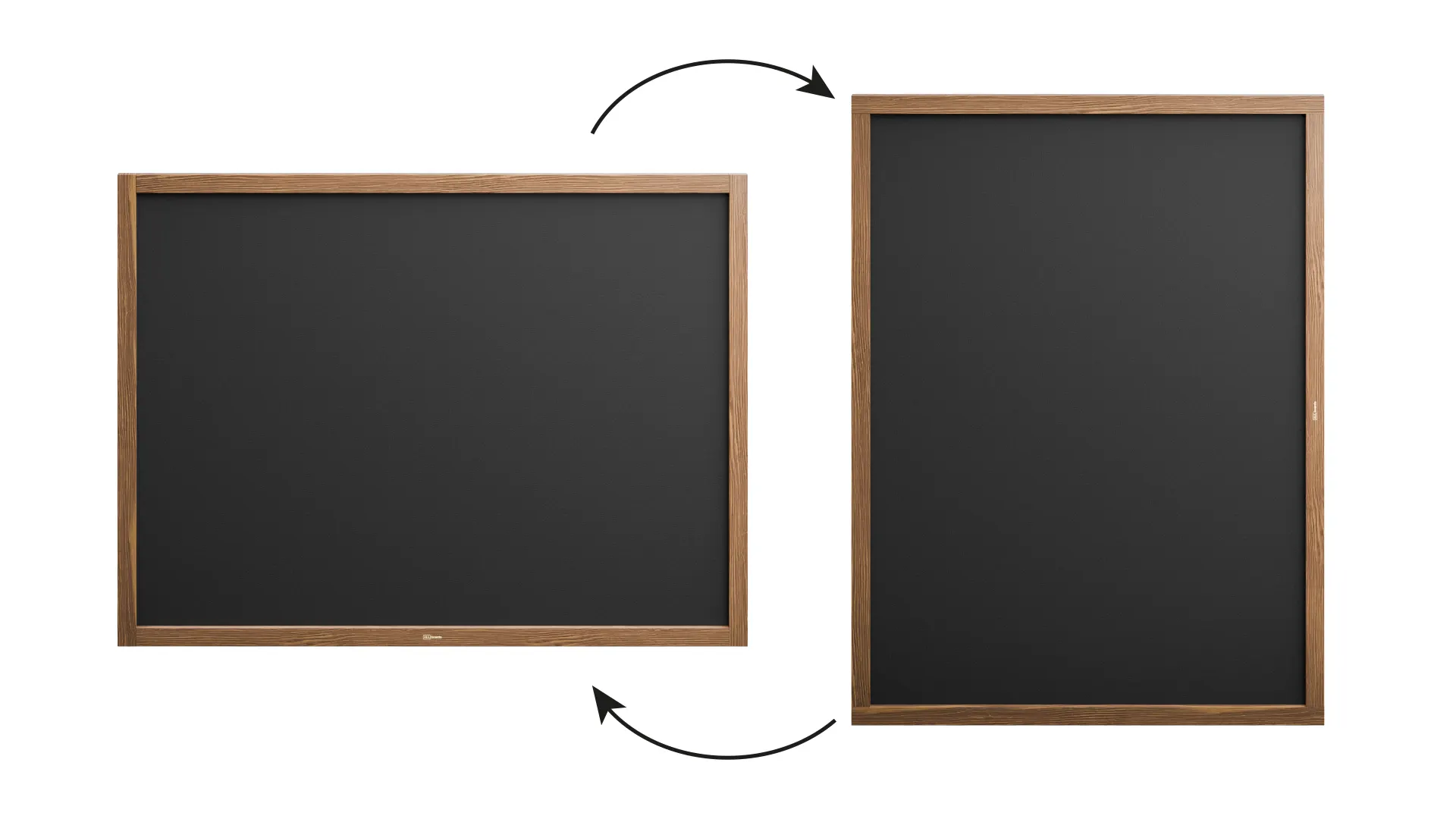 Selon les besoins, le tableau noir craie 90x120 peut être monté à la verticale ou à l’horizontale.
