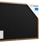 La surface du tableau est constituée d'un panneau en fibres de bois HDF laqué noir qui est caractérisé par sa haute densité. Le processus minutieux de revêtement de la surface avec un vernis spécial garantit un bon contraste et fait en sorte que la poussière des craies ou des marqueurs à craie liquide ne pénètre pas dans la surface et s'enlève facilement avec un chiffon humide. Le tableau est résistant aux rayures et facile à utiliser.