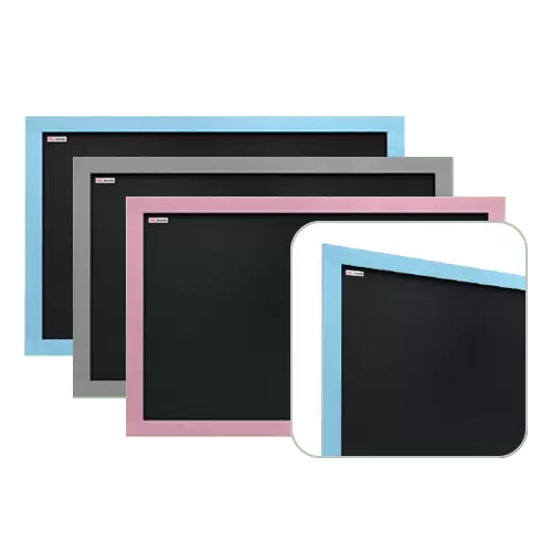 Avec le cadre classique en bois, les dimensions du tableau à craie mural varient entre 70x50cm et 200x120cm, tandis que les versions colorées sont disponibles en 60x40cm et 90x60cm.