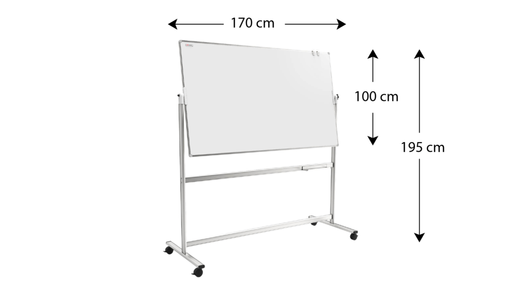 Tableau Blanc Emaillé Mobile Double Face Magnétique Effaçable à Sec avec Cadre en Aluminium 170x100cm