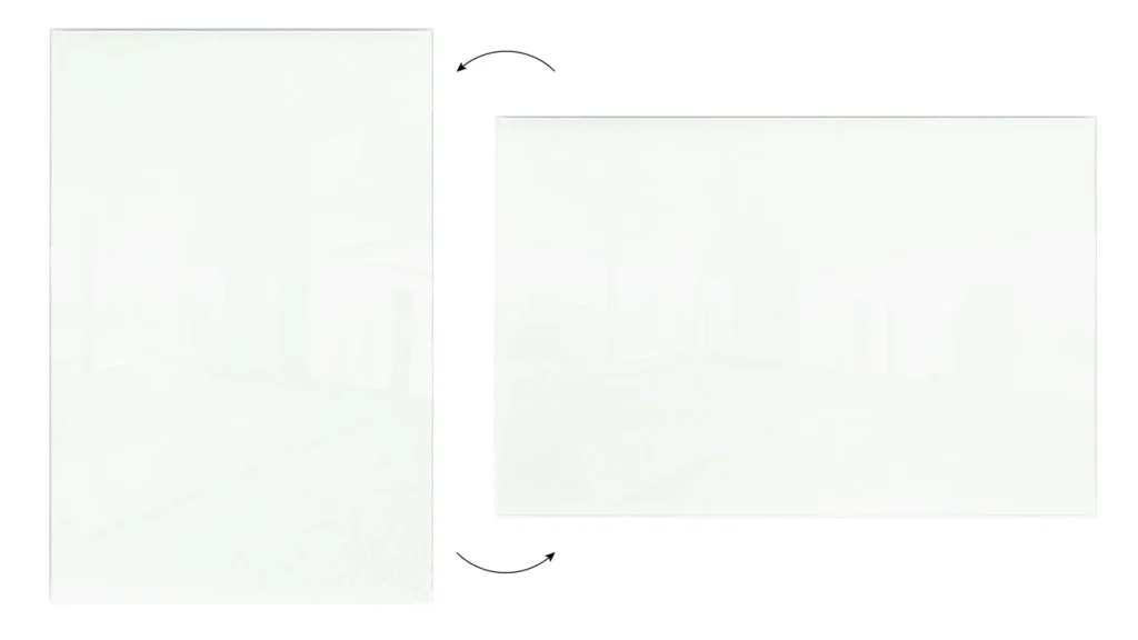Le panneau a été fabriqué en verre trempé d'une épaisseur de 4 mm. Les bords du verre sont meulés et les coins sont biseautés à angle droit. Cela garantit la sécurité dans l'utilisation quotidienne. Grâce à la surface en verre, le tableau est très facile à entretenir au quotidien.