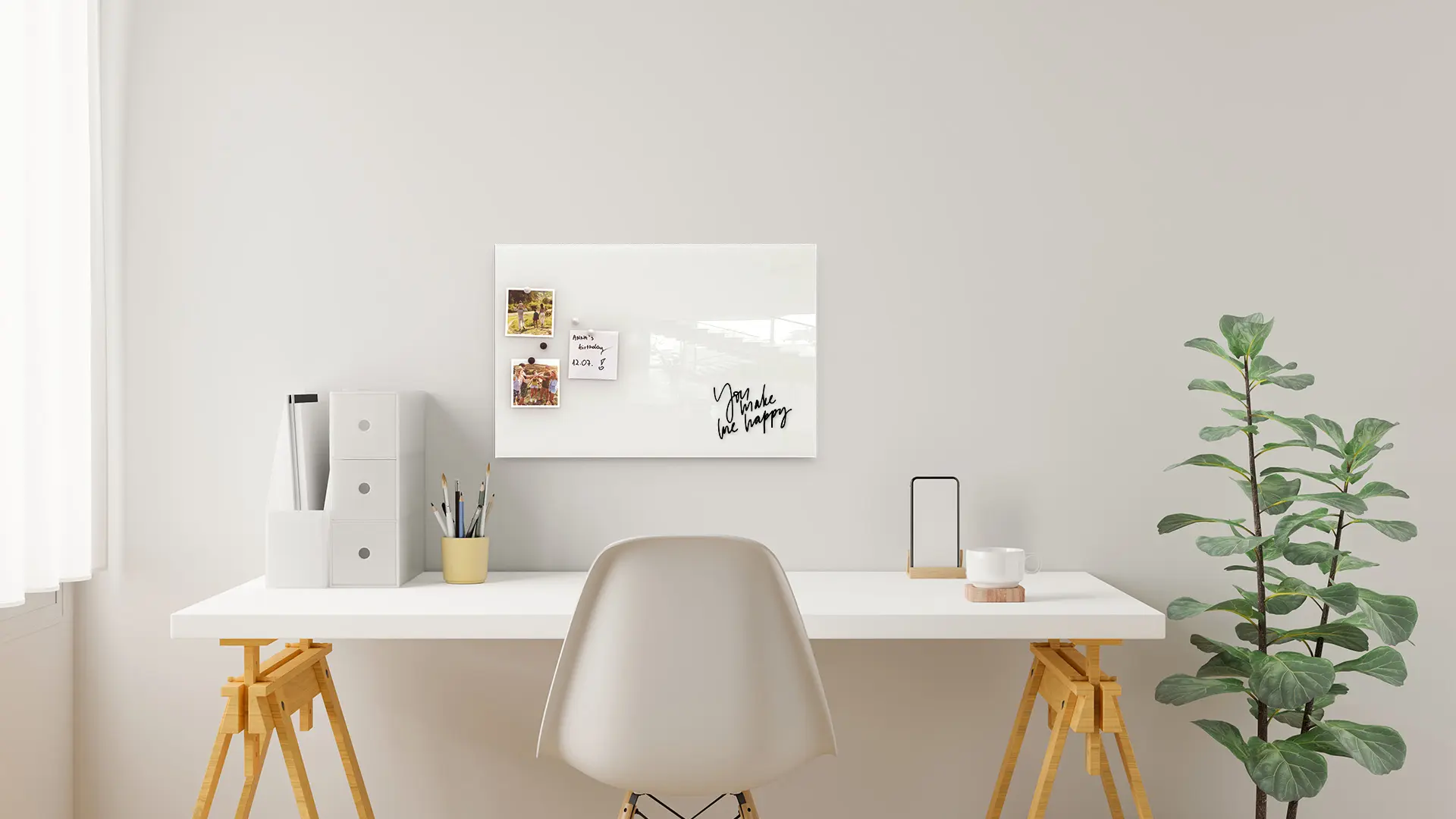 Le tableau en verre magnétique et effaçable à sec peut être utilisé de différentes manières - écrivez dessus avec n'importe quel type de marqueur ou fixez des notes importantes avec des aimants en néodyme. Grâce à lui, vous gagnez en productivité en organisant les informations clés. C'est également un endroit idéal pour les dessins créatifs et les notes détaillées, que vous pouvez facilement effacer à l'aide d'une éponge ou d'un chiffon dès que vous n'en avez plus besoin. Ainsi le tableau est très facile à entretenir.