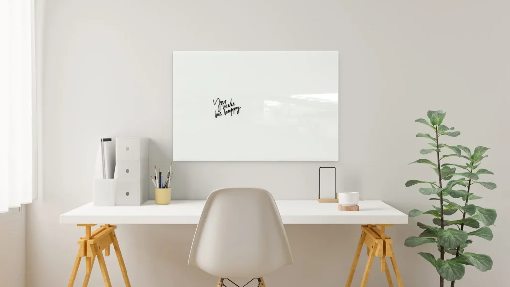 Le tableau en verre magnétique et effaçable à sec peut être utilisé de différentes manières - écrivez dessus avec n'importe quel type de marqueur ou fixez des notes importantes avec des aimants en néodyme. Grâce à lui, vous gagnez en productivité en organisant les informations clés. C'est également un endroit idéal pour les dessins créatifs et les notes détaillées, que vous pouvez facilement effacer à l'aide d'une éponge ou d'un chiffon dès que vous n'en avez plus besoin. Ainsi le tableau est très facile à entretenir.