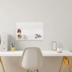 Le tableau en verre magnétique et effaçable à sec peut être utilisé de différentes manières - écrivez dessus avec n'importe quel type de marqueur ou fixez des notes importantes avec des aimants en néodyme. Grâce à lui, vous gagnez en productivité en organisant les informations clés. C'est également un endroit idéal pour les dessins créatifs et les notes détaillées, que vous pouvez facilement effacer à l'aide d'une éponge ou d'un chiffon dès que vous n'en avez plus besoin. Ainsi le tableau est très facile à entretenir.