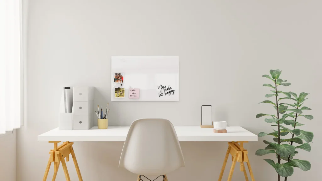 Le tableau en verre magnétique et effaçable à sec peut être utilisé de différentes manières - écrivez dessus avec n'importe quel type de marqueur ou fixez des notes importantes avec des aimants en néodyme. Grâce à lui, vous gagnez en productivité en organisant les informations clés. C'est également un endroit idéal pour les dessins créatifs et les notes détaillées, que vous pouvez facilement effacer à l'aide d'une éponge ou d'un chiffon dès que vous n'en avez plus besoin. Ainsi le tableau est très facile à entretenir.