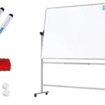 - PRATIQUE - double face, placé sur un support à roulettes. La surface d'écriture double face offre encore plus d'espace pour les notes importantes. Le tableau blanc est rotatif pour un accès rapide et facile aux deux côtés. L'étagère à marqueurs en aluminium inclus vous permet d'organiser vos accessoires les plus importants afin qu'ils soient toujours à portée de main.