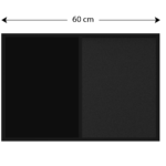 Tableau COMBI en liège noir et à craie noir magnétique 60x40cm cadre en bois laqué noir