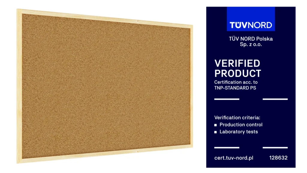La surface du tableau a été fabriquée en liège naturel de la plus haute qualité, traité. Cela lui confère la densité et la douceur voulues. Le liège a une épaisseur de 1 mm et est placé sur un panneau de fibres, ce qui assure la rigidité de l'ensemble de la structure.