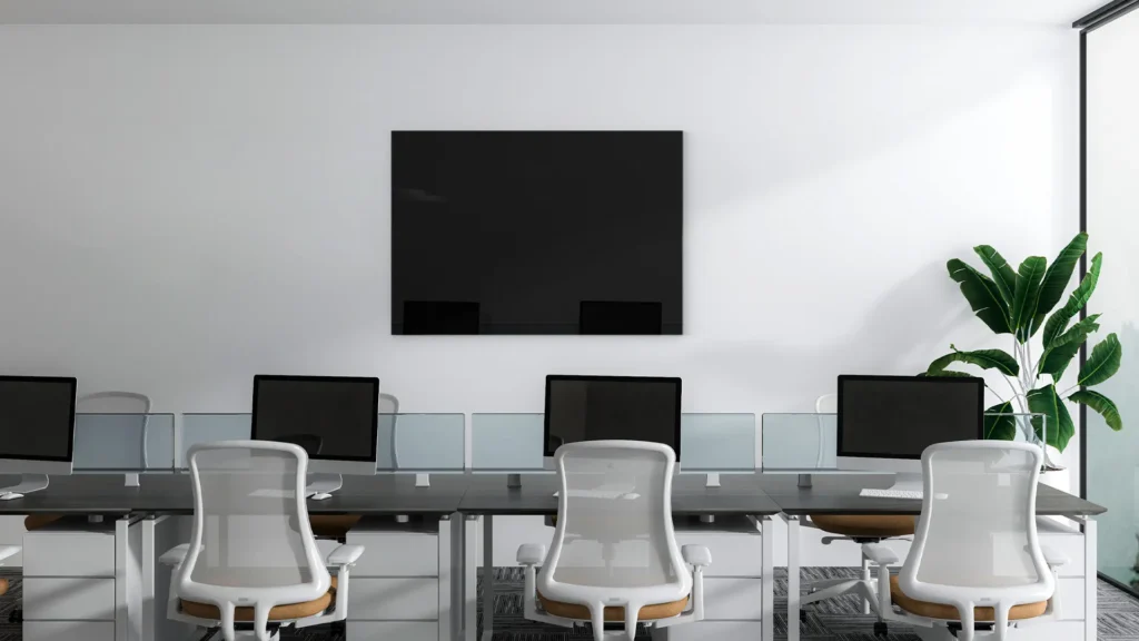 Un rail de montage spécial, inclus dans le kit, compatible avec le côté le plus long du tableau, est utilisé pour le montage (il est possible de l'ajuster au côté le plus court, par vos propres moyens). Le rail est vissé au mur et le tableau est accroché aux crochets. N'oubliez pas que le tableau monté doit se trouver à environ 5 mm du mur.
